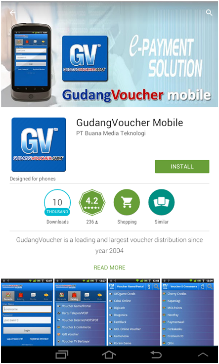 - Pilih aplikasi GudangVoucher dan pilih "Install".