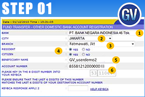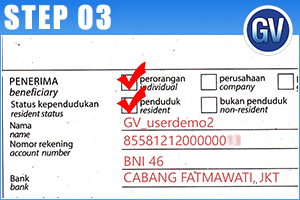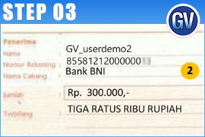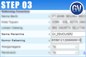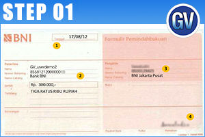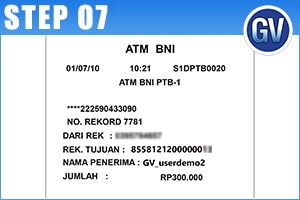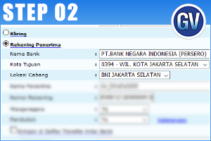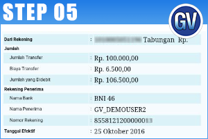 Pilih Bank Penerima (BNI 46) dan Tuliskan nomor virtual account customer (855812120xxxxxxx).