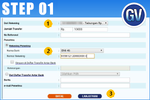 Pilih Rekening Debet dan Isikan Jumlah yang akan ditransfer.