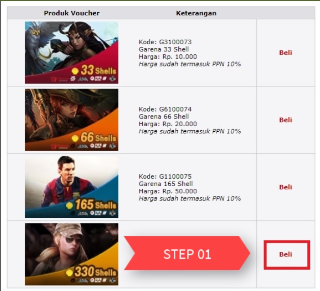 1. Pilih Nominal yang ingin dibeli