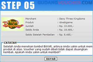 Pada halaman konfirmasi akan tampil tagihan yang akan mengurangi saldo Anda di GudangVoucher. Kemudian klik bayar.