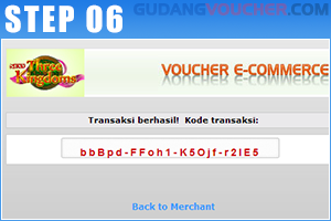 Transaksi sukses! Kode yang tampil sebagai bukti transaksi. Klik 'Back to Merchant' Anda akan kembali ke situs Sexy Three Kingdoms.