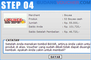 Pada halaman konfirmasi akan tampil tagihan yang akan mengurangi saldo Anda di GudangVoucher. Kemudian klik "Bayar".