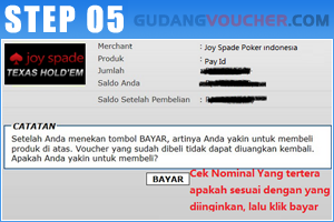 Pada halaman konfirmasi akan tampil tagihan yang akan mengurangi saldo Anda di GudangVoucher. Kemudian klik "Bayar" untuk melakukan pembayaran atas transaksi Anda.