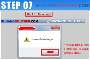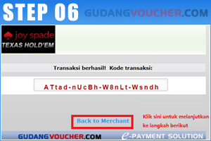 Transaksi sukses! Kode yang tampil sebagai bukti transaksi. Klik "Back to Merchant".