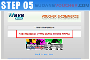 Transaksi sukses! Kode yang tampil sebagai bukti transaksi. Klik "Back to Merchant".