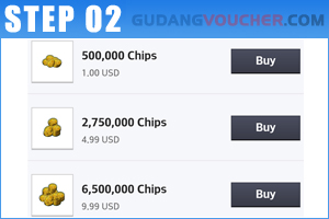 Kemudian pilih denominasi pengisian Chips yang Anda inginkan.