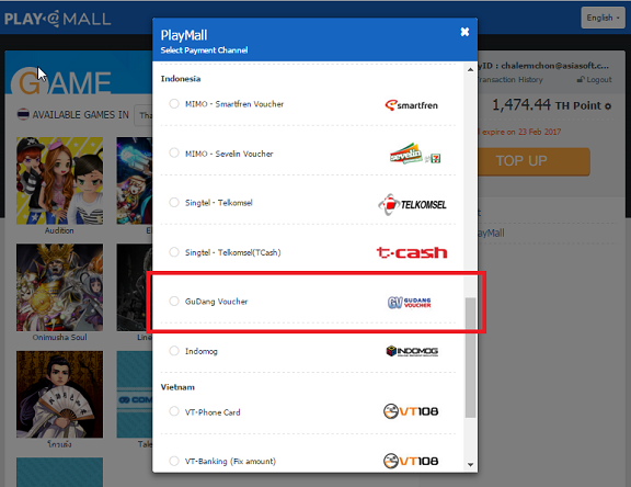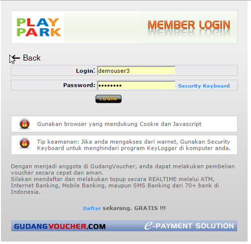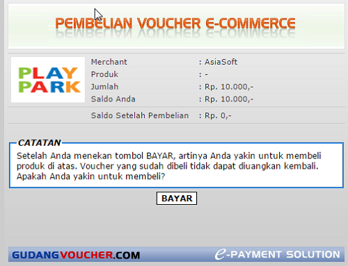 PlayPark menyediakan fasilitas Top-up credit melalui Gudang Voucher