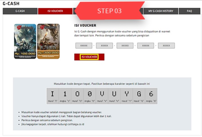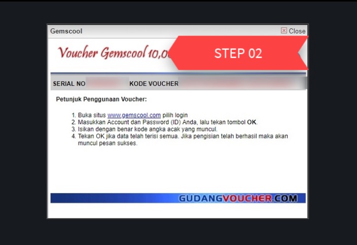 3. Login ke Gemscool.com, Pilih menu isi Gcash, Masukan Kode Voucher