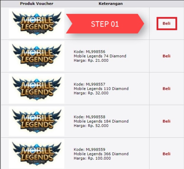 1. Pilih Voucher yang ingin dibeli