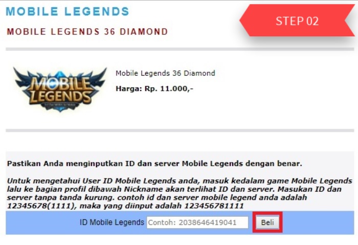2. Masukan ID dan Server tanpa tanda kurung